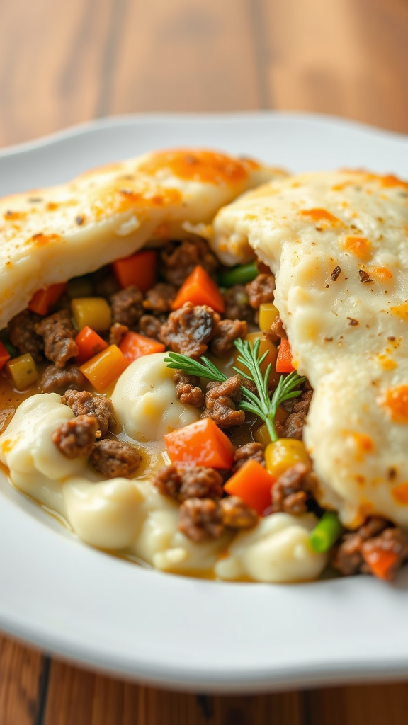 Shepherd’s pie is a classic comfort food that warms the heart and fills the belly. This easy version, as shown in the image, features a golden, creamy topping that gives way to a rich filling of seasoned meat and colorful vegetables.