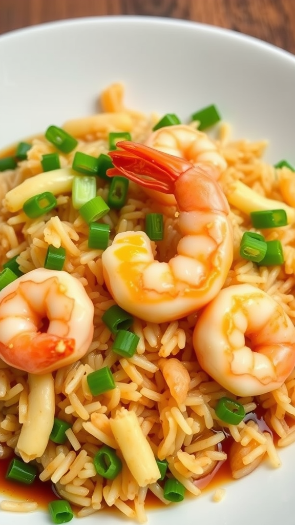 This dish is not just tasty; it’s also a great way to use up leftover rice and veggies. You can customize it to your liking by adding other ingredients like peas or carrots. The shrimp adds a nice protein kick, making it a well-rounded meal.