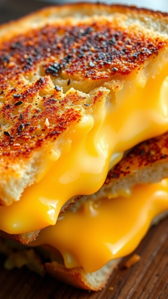 Look at this mouthwatering grilled cheese sandwich! The crispy, golden-brown exterior perfectly complements the gooey, melted cheese inside. It’s an inviting sight, isn’t it? This classic comfort food is simple yet irresistible.