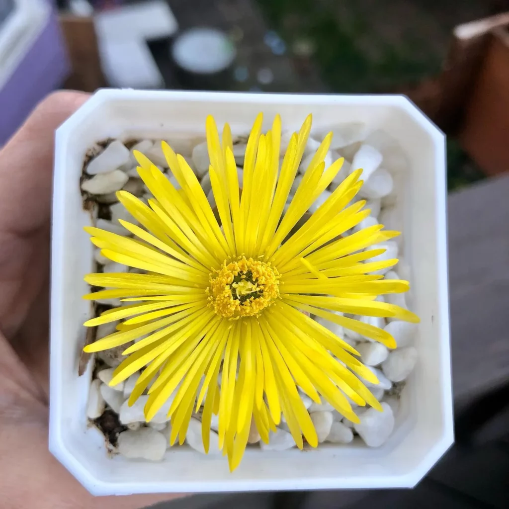Karoo Rose, also known as Lapidaria margaretae, is a unique succulent with yellow blossoms. It has two to four pairs of rounded leaves that are pinkish or grey white at the base. The leaves are thick and create compact heads of rosettes. Karoo Rose produces single yellow flowers with up to 100 petals and 500 stamens.