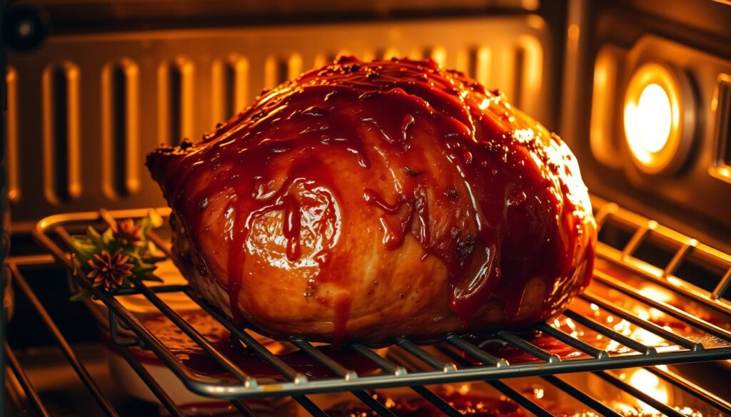 Another trick is to use a kitchen torch. It lets you caramelize parts of the glaze. This gives your ham a beautiful, uneven look like a pro’s.