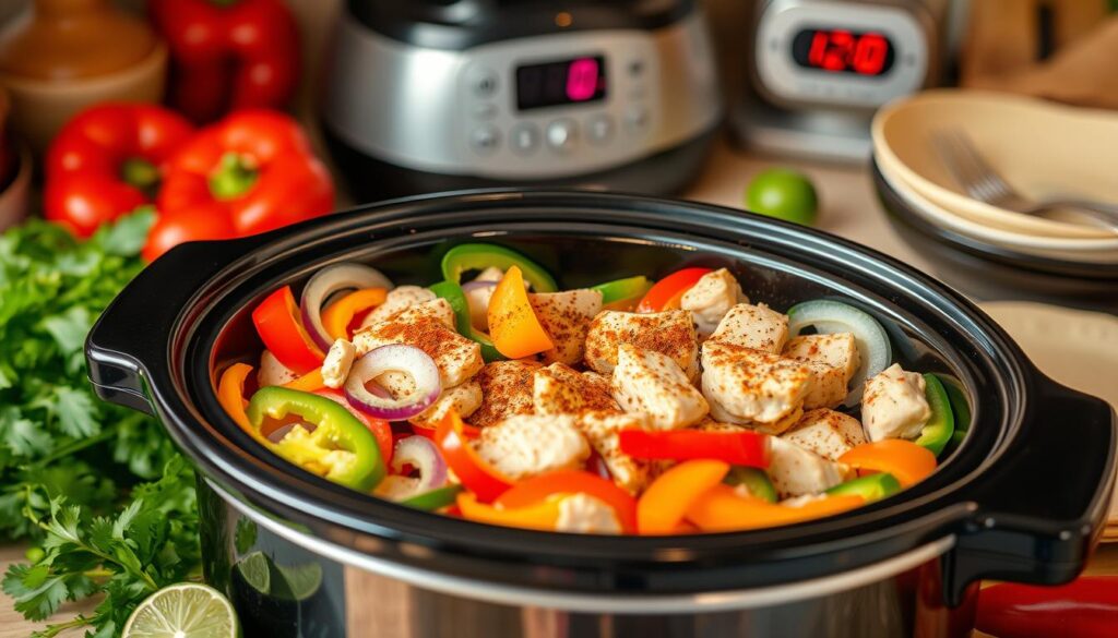 Making chicken fajitas in a crockpot is like creating a work of art. Choosing the right ingredients is crucial for great flavors. The type of chicken you pick is important. Add the right spices and seasoning, and you’re set for success.