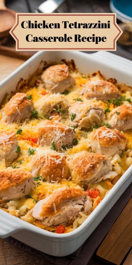 Serve this delicious Chicken Tetrazzini Casserole warm, and enjoy the perfect balance of creamy, cheesy, and comforting flavors. Pair it with a fresh salad or your favorite side dish for a complete and satisfying meal. Bon appétit!