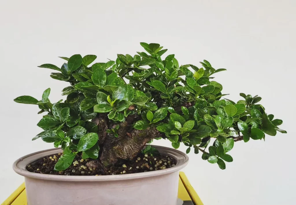 Gardenia Bonsai requires regular pruning and wiring to shape its growth and achieve the desired appearance. Pruning should be done after flowering, removing withered flowers and unnecessary branches.