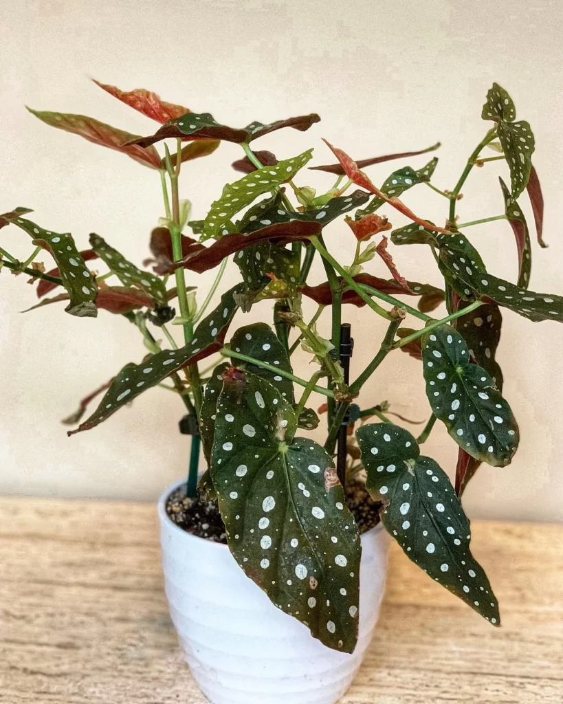 Begonias are popular for their beautiful flowers and varied leaf patterns. They prefer bright, indirect light and regular watering. This plant is perfect for adding a vibrant and colorful touch to your indoor garden.