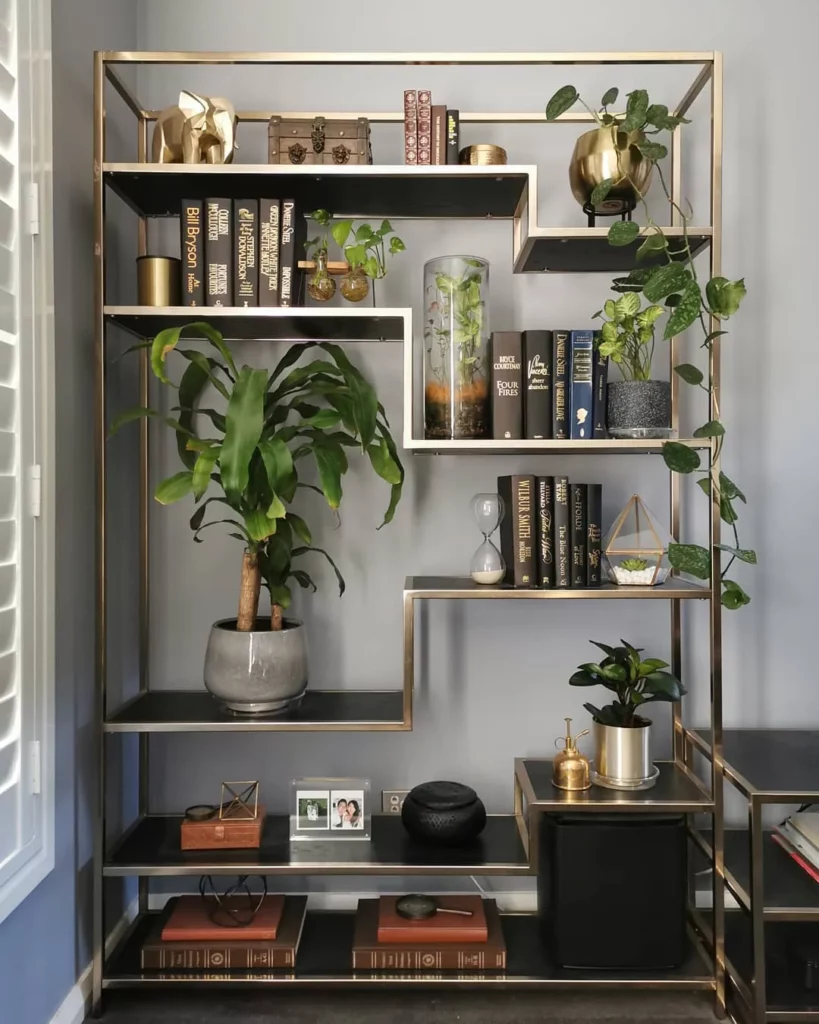 Arrowhead Plant (Syngonium Podophyllum) In Glazed Pot Displayed On Shelf Along with Books at Home