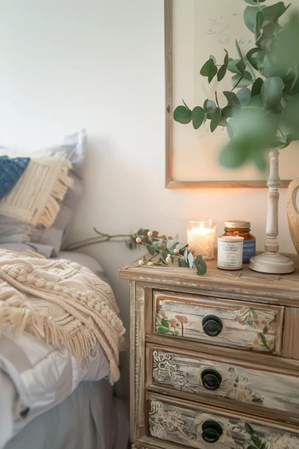 Add personal flair with DIY decor touches like hand-painted knobs or a homemade candle. These small projects not only personalize your space but also add a fun, crafty element to your bedroom.